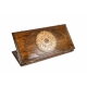 Данная модель полностью ручная работа. Нарды лакированы, петли и замки выплавлены из бронзы. Поле для игры вырезано из одной массы дерева. Обратная сторона нард предназначена для игры в шашки.